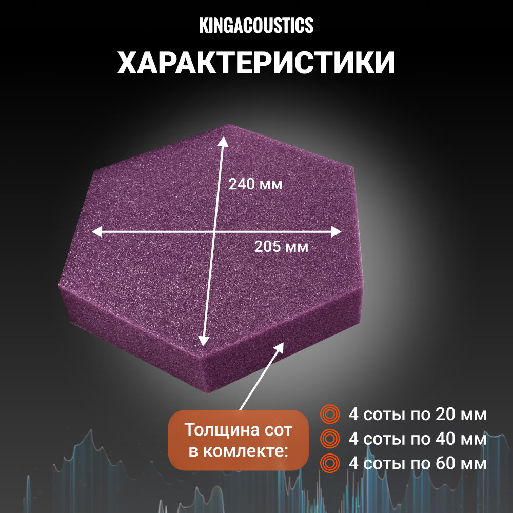 Акустический поролон Гексагон фиолетовый цвет / комплект из 12шт интересное:
