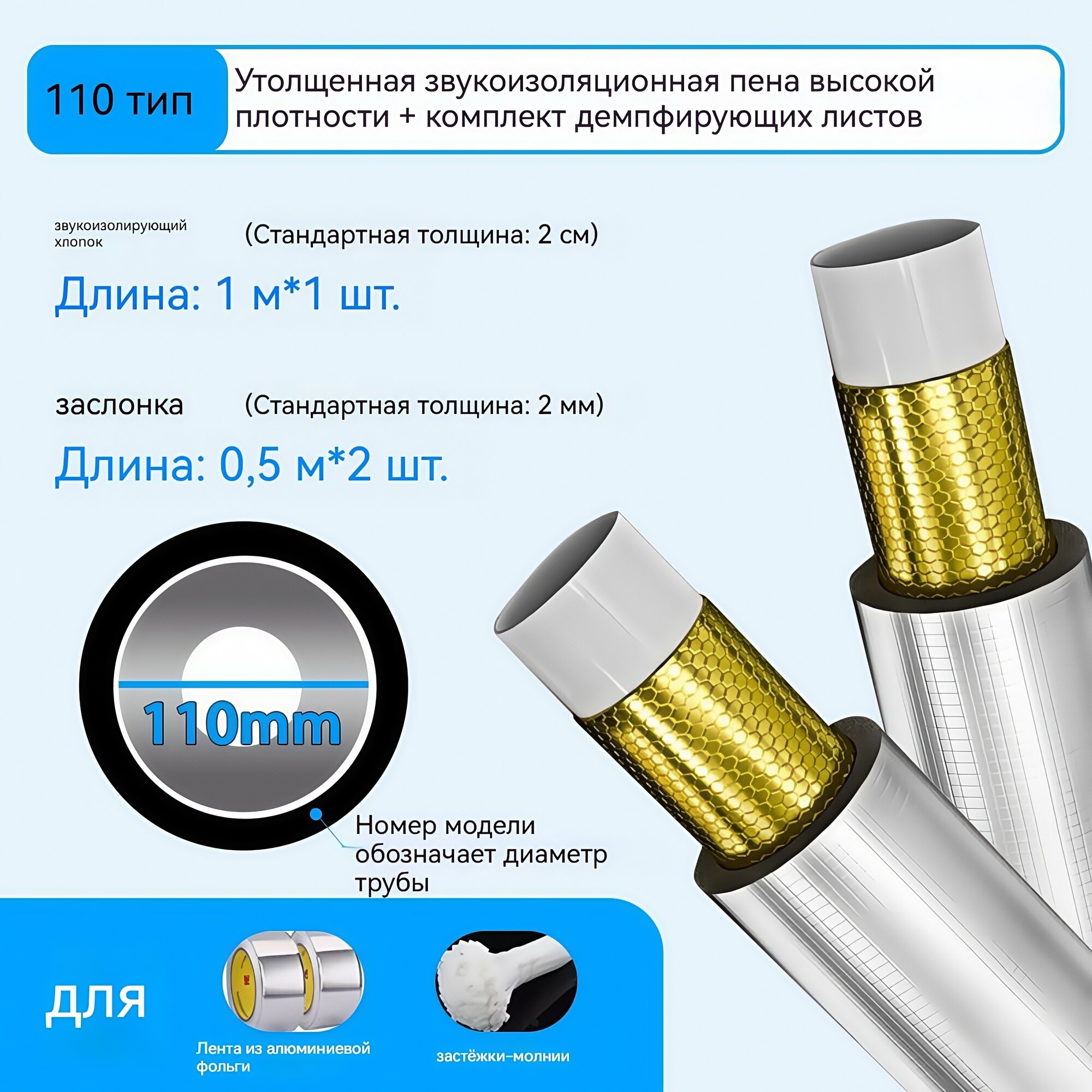Купить Звукоизоляция труб, подходящая для труб диаметром 110 мм, с демпфирующими прокладками