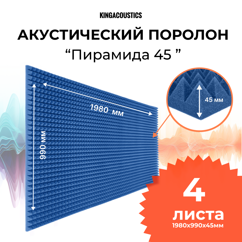 Купить Акустический поролон Пирамида 45мм 4 листа 1980х990х45мм синего цвета