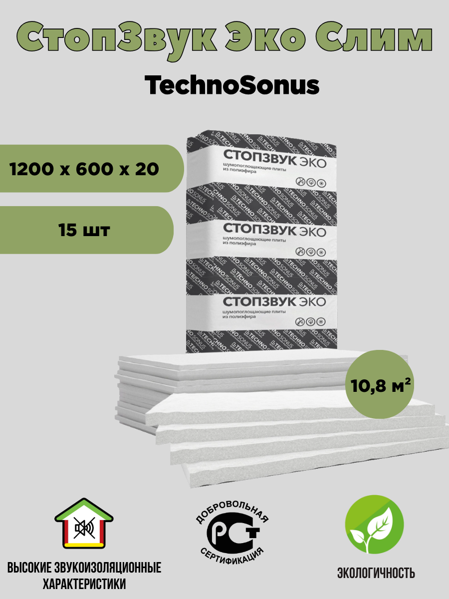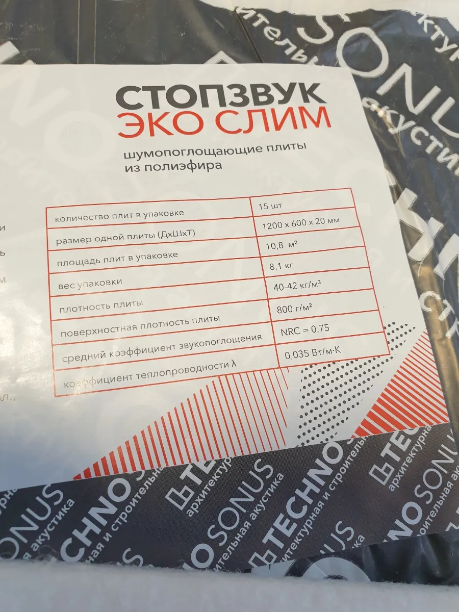 Шумопоглощающая плита СтопЗвук Эко Слим 10,8 м² Техносонус 15 шт/уп интересное: