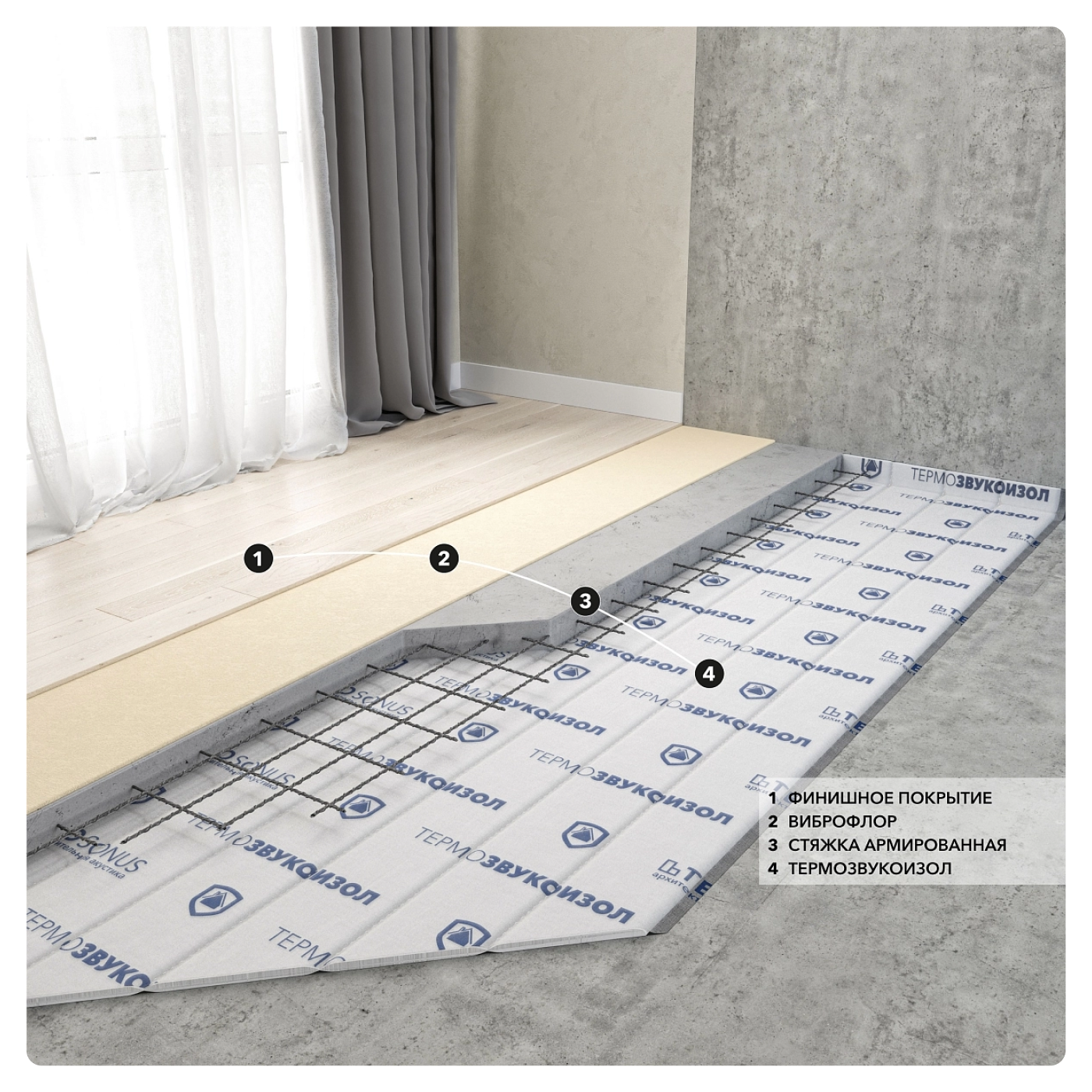 Виброшумоизоляция межэтажных перекрытий Penoterm (Пенотерм), подложка под стяжку, 6х1300, 7 метров