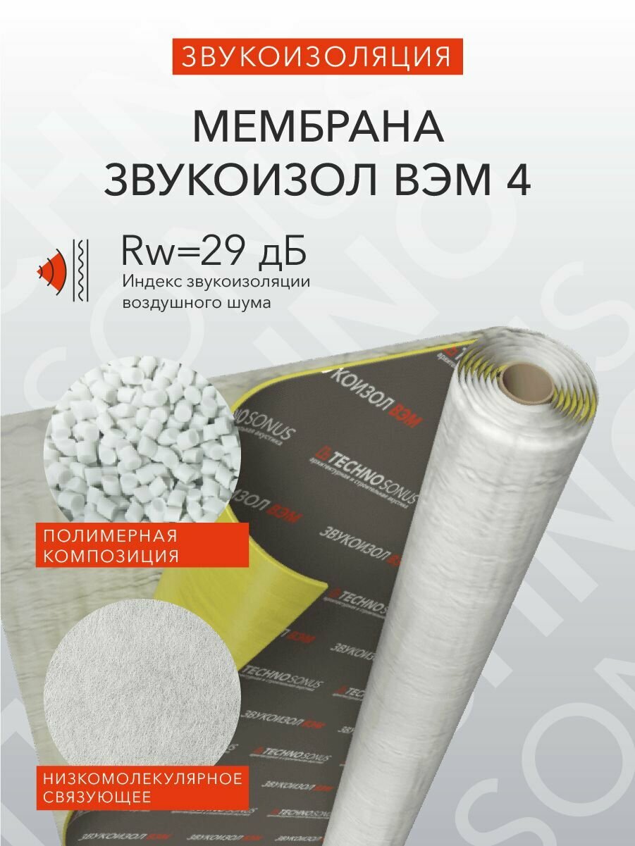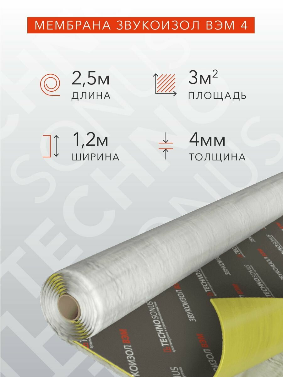 Мембрана Звукоизол ВЭМ 4 (2,5м x 1,2м x 4мм) 3м2 интересное: