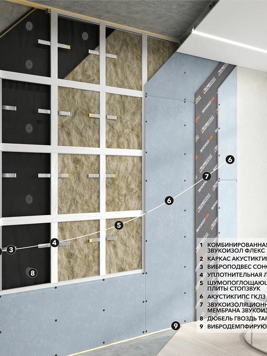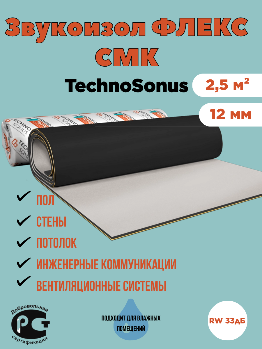 Звукоизоляция TechnoSonus Звукоизоляционная мембрана Звукоизол Флекс СМК интересное: