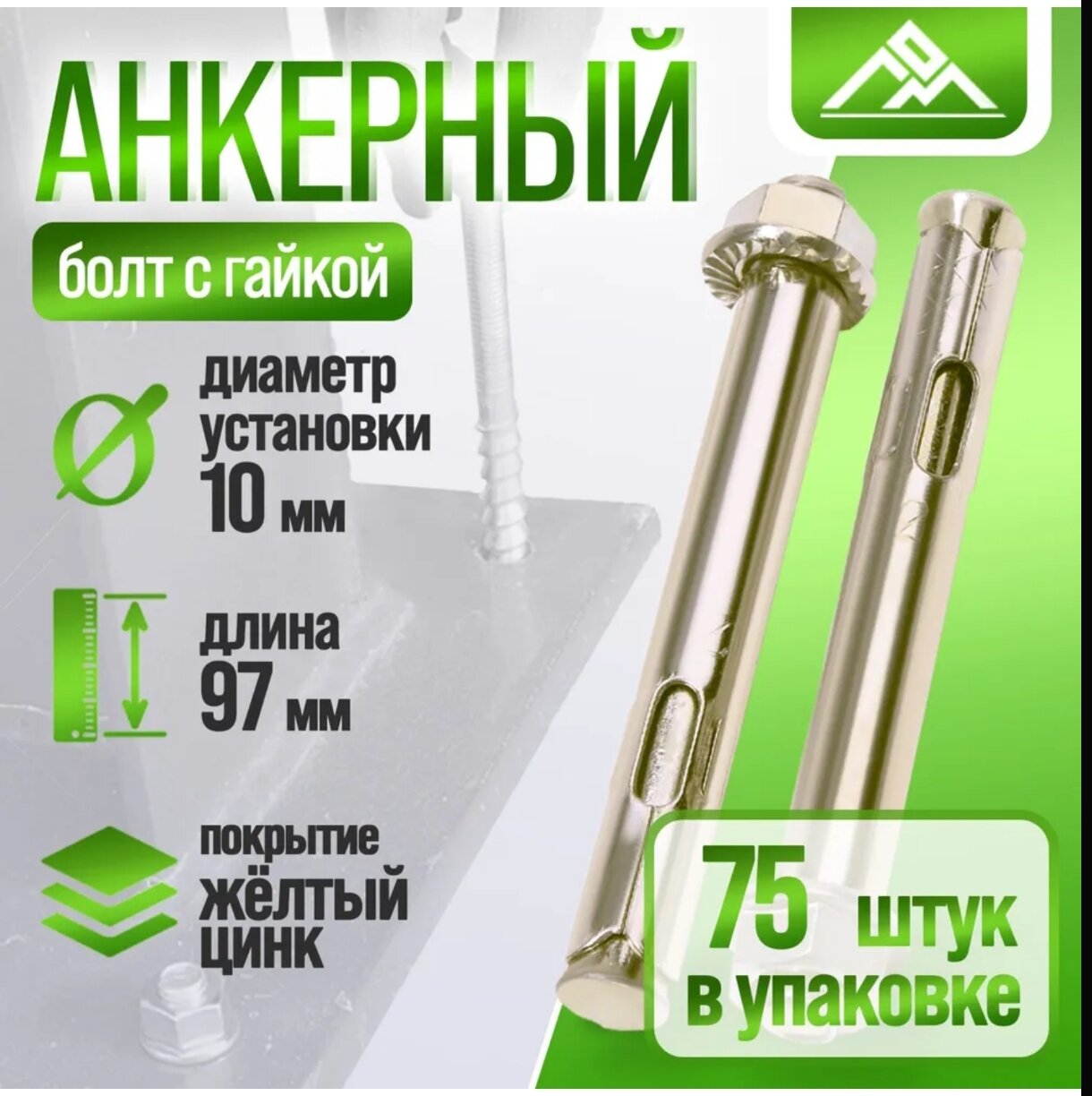 Анкерный болт Стройбат М10х97, сталь, желтопассированный, с гайкой 75шт интересное: