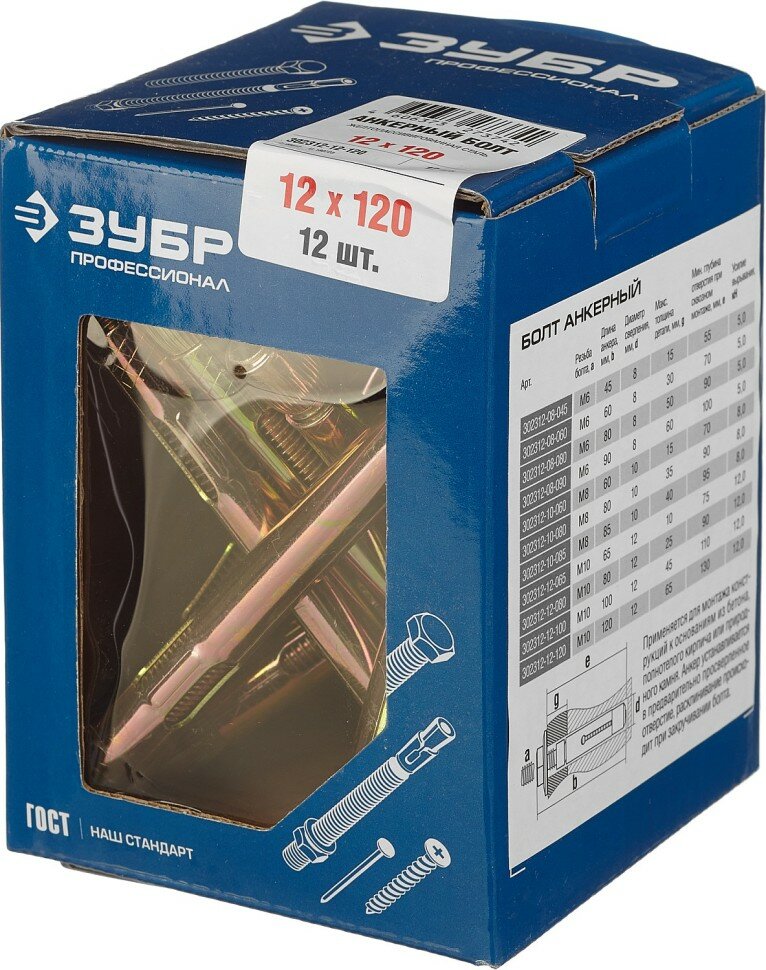 ЗУБР Болт анкерный, 12 x 120 мм, 12 шт, желтопассивированный, ЗУБР Профессионал, ( 302312-12-120 ) интересное: