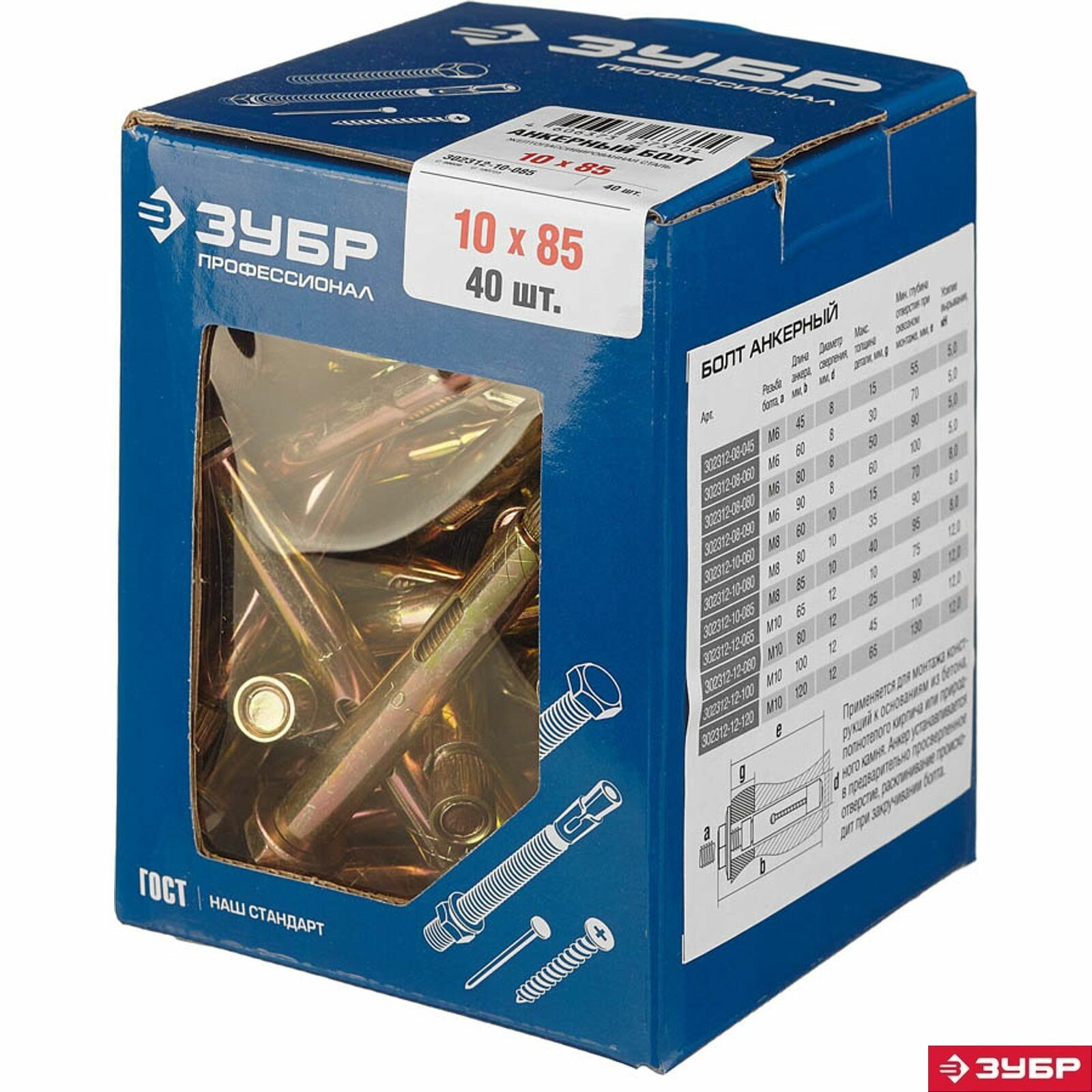 ЗУБР 10x85 мм, 40 шт, желтопассивированный, болт анкерный интересное: