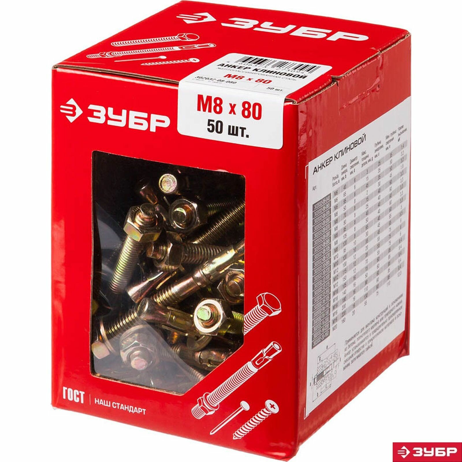 Купить ЗУБР 50 шт, М8х80 мм, желтопассивированный, анкер клиновой