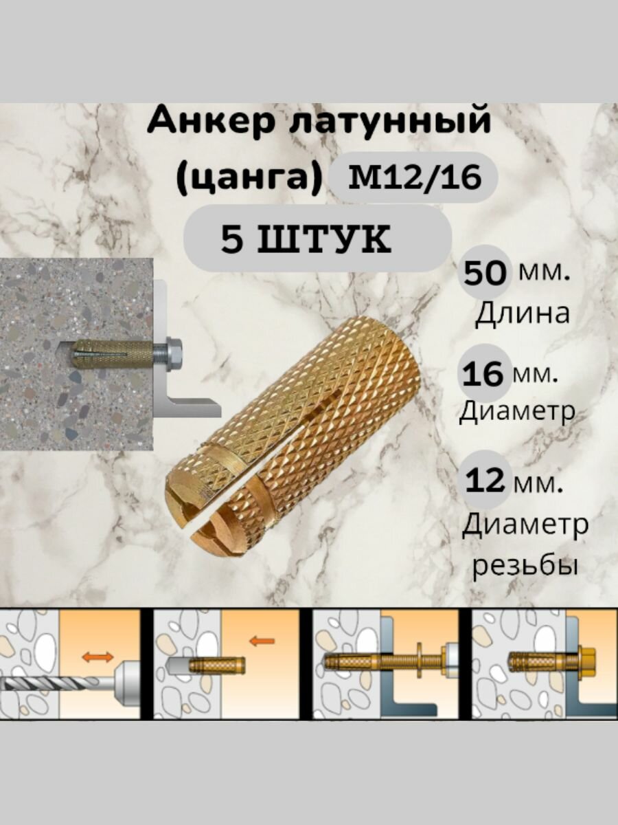 СохранитьАнкер латунный (цанга) ProfAir, М12, влагостойкий, длина 50 мм, 5 штук. интересное: