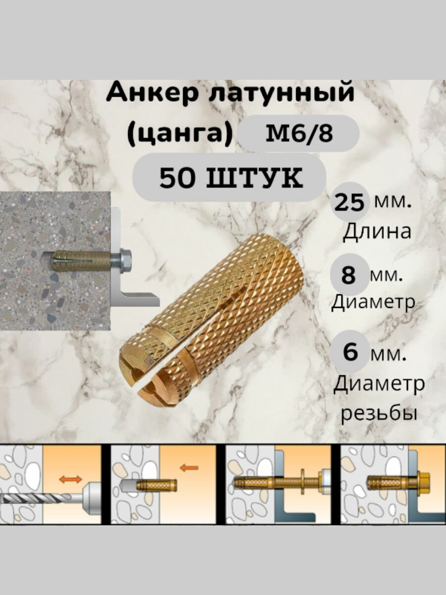 Анкер латунный (цанга), влагостойкий, М16, длина 65 мм, 25 штук.
