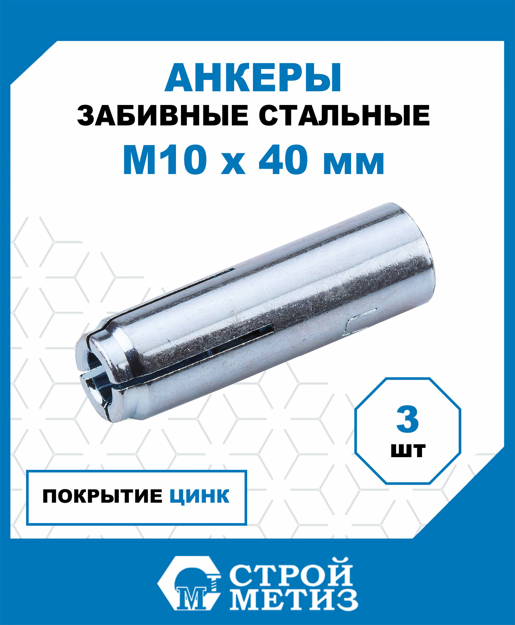 Анкеры Стройметиз забивные стальные 10х40, сталь, покрытие - цинк, 3 шт. интересное:
