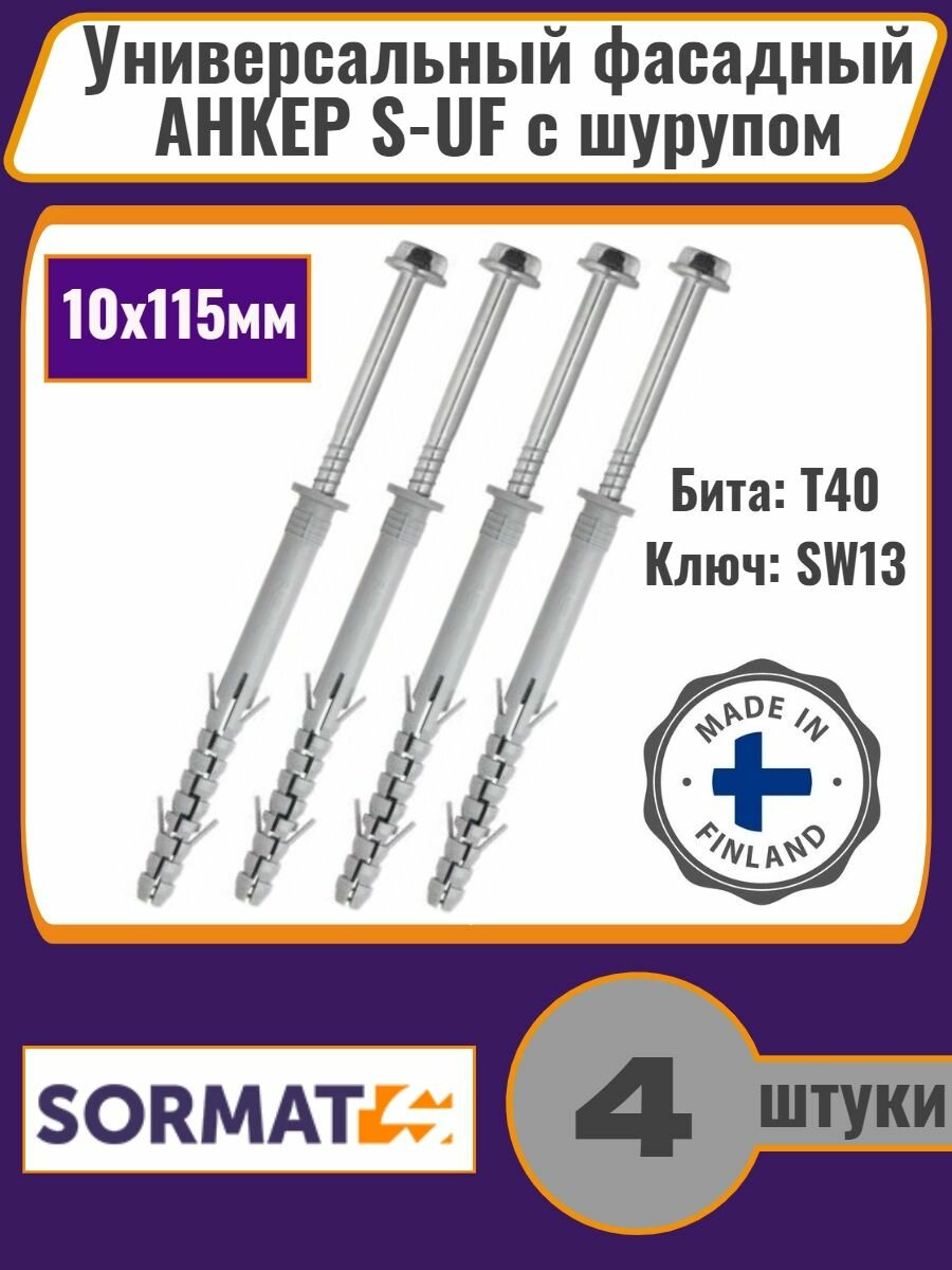 Универсальный фасадный дюбель Sormat S-UF 10*115мм, HEX SW13 T40 ZN, 4шт интересное: