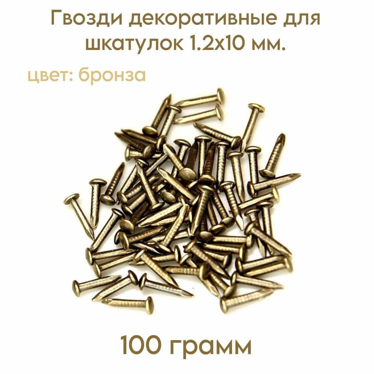 Купить Гвозди декоративные для шкатулок, цвет бронза, 1.2х10 мм. (100 грамм)