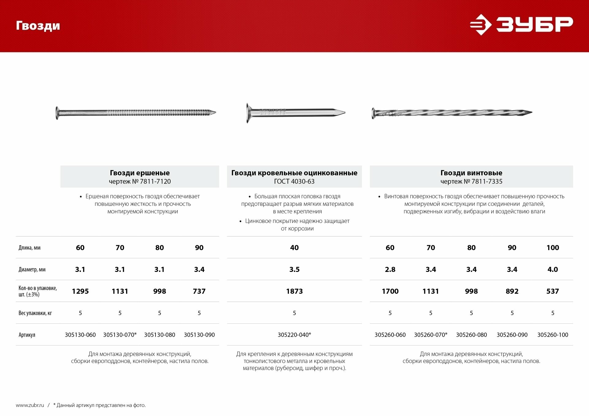 ЗУБР 80 х 3.4 мм, винтовые гвозди, 5 кг (305260-080)