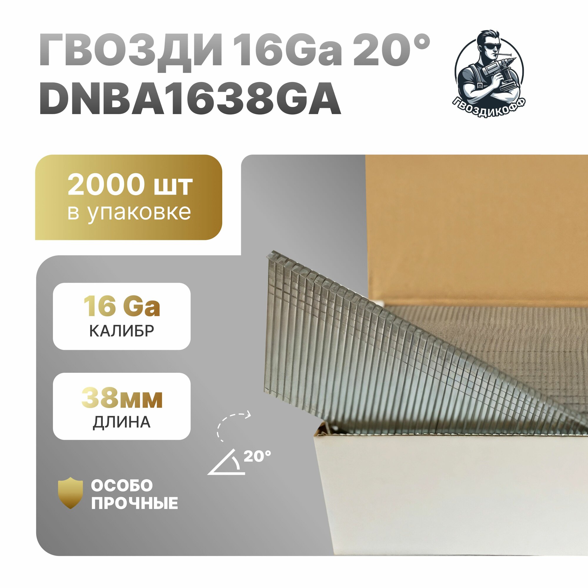 Гвозди DNBA1638GZ, 1.6/38 мм, 16Ga, угол наклона 20 градусов, гальваническое цинкование, 2000 шт интересное: