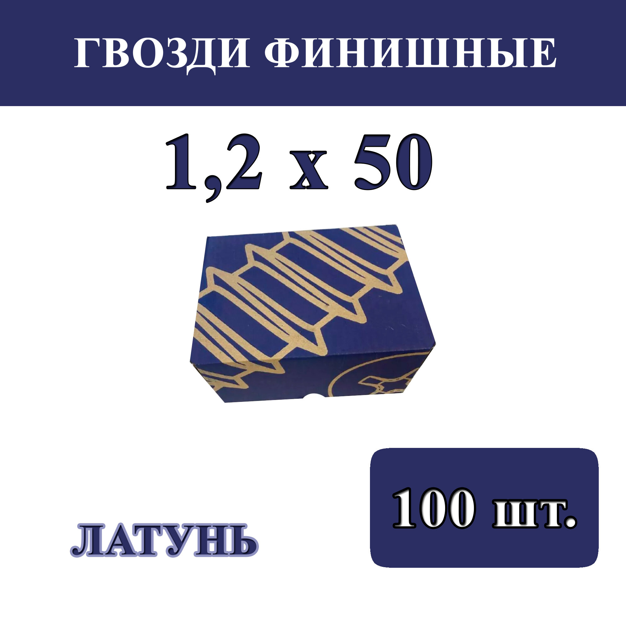 Гвозди финишные 1,2мм х 50мм, латунированные (упаковка - 200 шт.)
