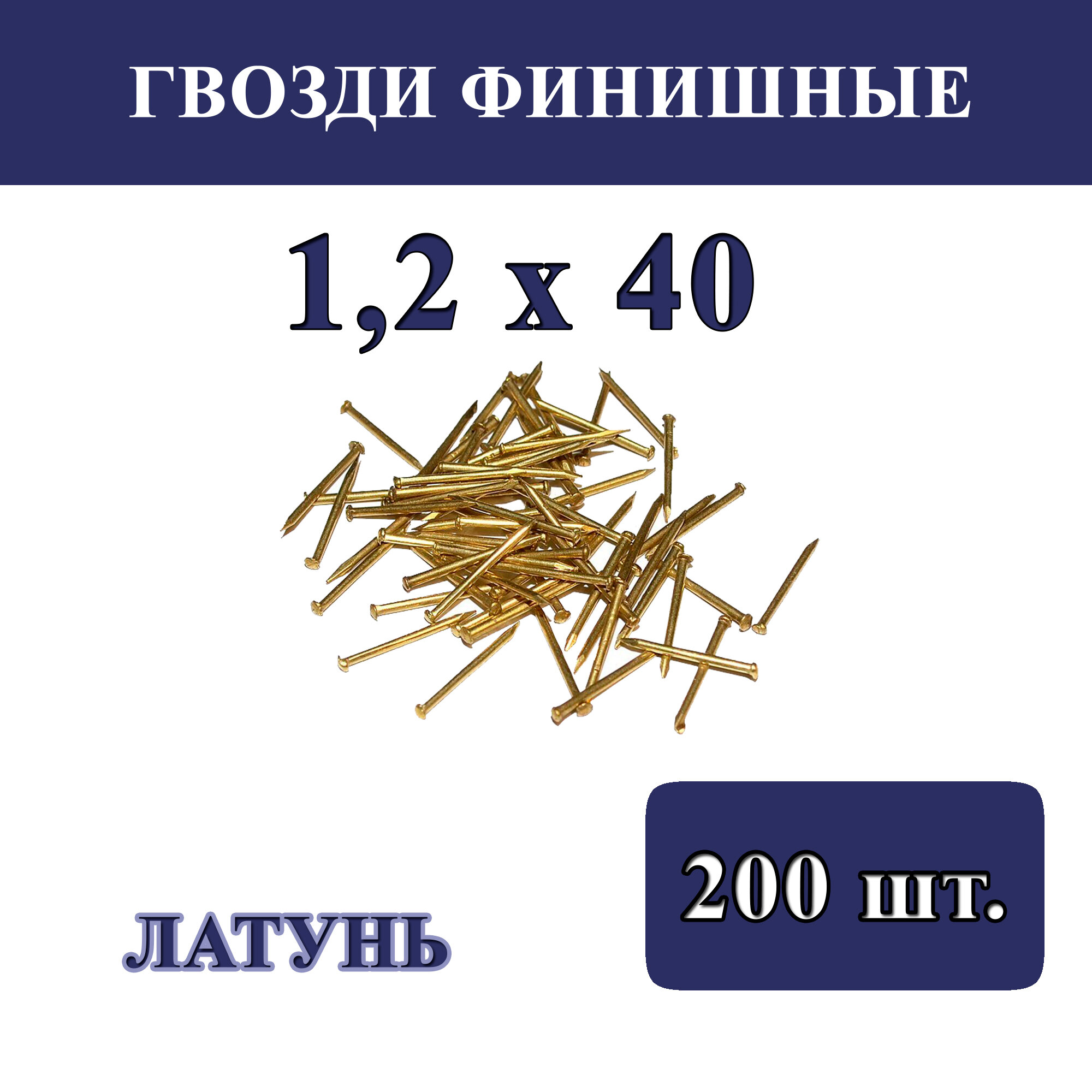 Гвозди финишные 1,2мм х 40мм, латунированные (упаковка - 100 шт.)