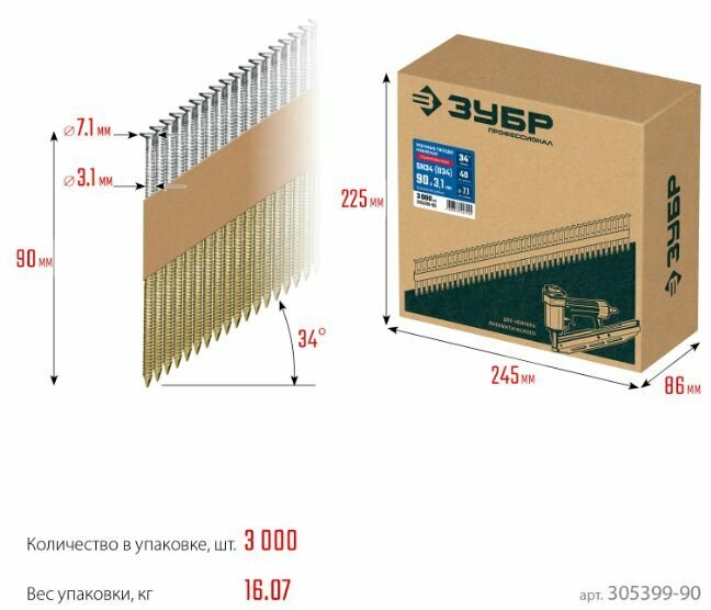 Реечные гвозди рифленые SN34 (D34) 90х3.1 мм 3000 шт ЗУБР 305399-90 интересное: