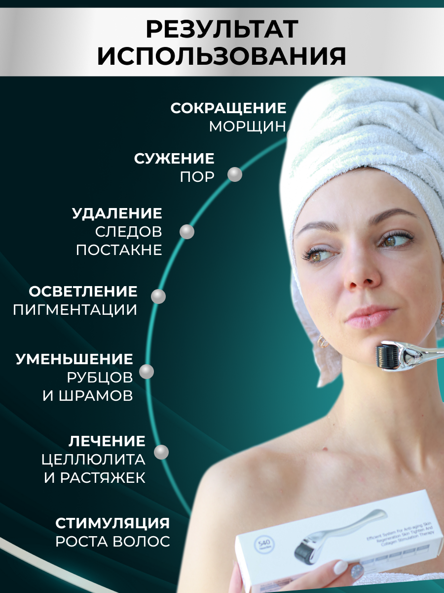 DermaRoller Мезороллер 540 игл по 0,5 мм для омоложения кожи лица Derma Roller