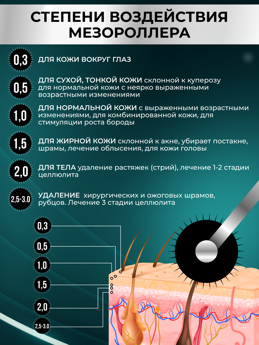 Мезороллер 540 игл 0,5 мм для лица дермароллер
