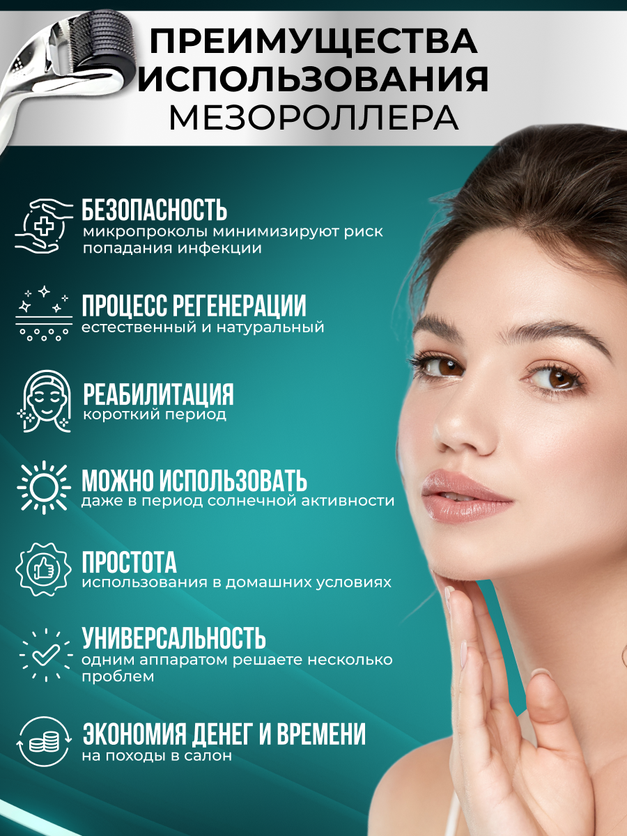 Мезороллер 1мм для лица, роллер от морщин, массажер ролик с титановыми иглами для тела и волос, мезотерапияМезоролер