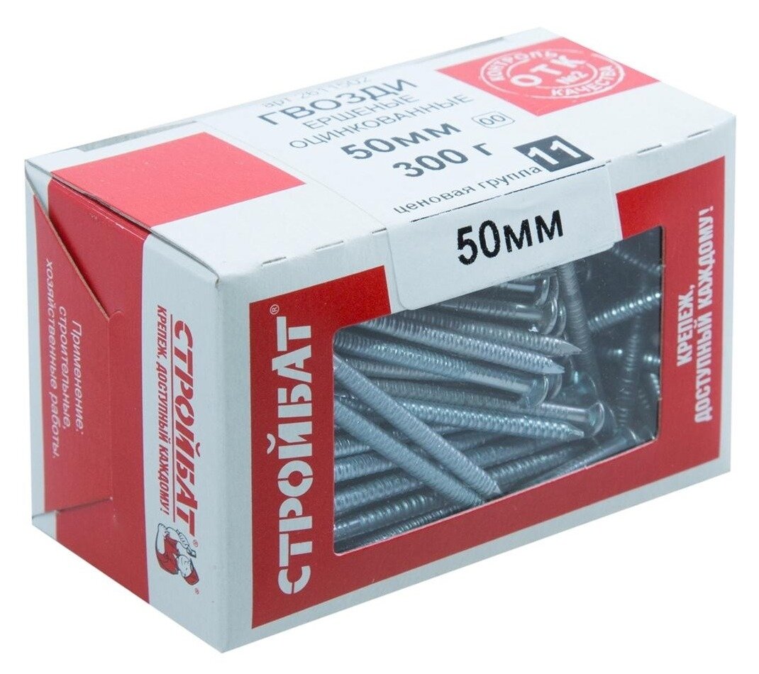 Купить Гвозди ершеные Стройбат оцинкованные, стальные, 50мм, 0.3кг / крепеж и фурнитура