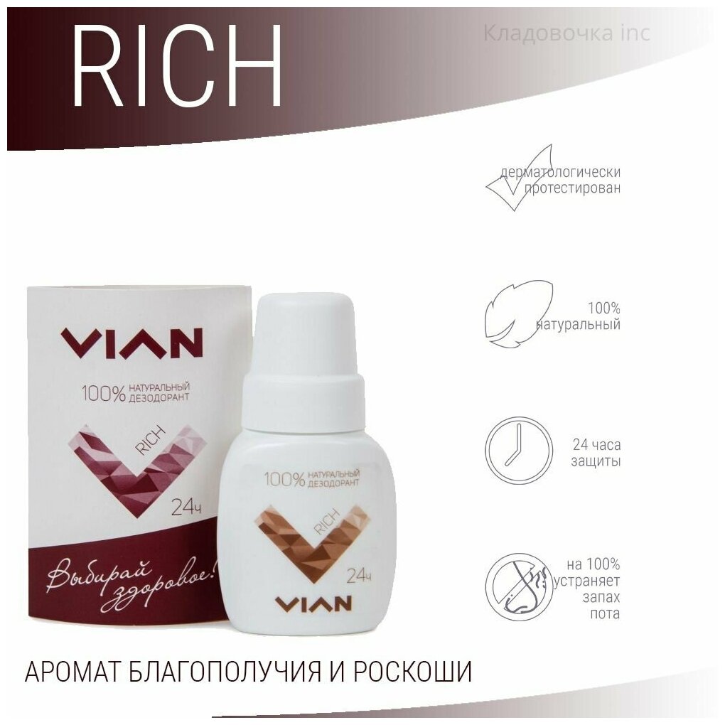 Натуральный концентрированный дезодорант Vian RICH, 50 мл интересное: