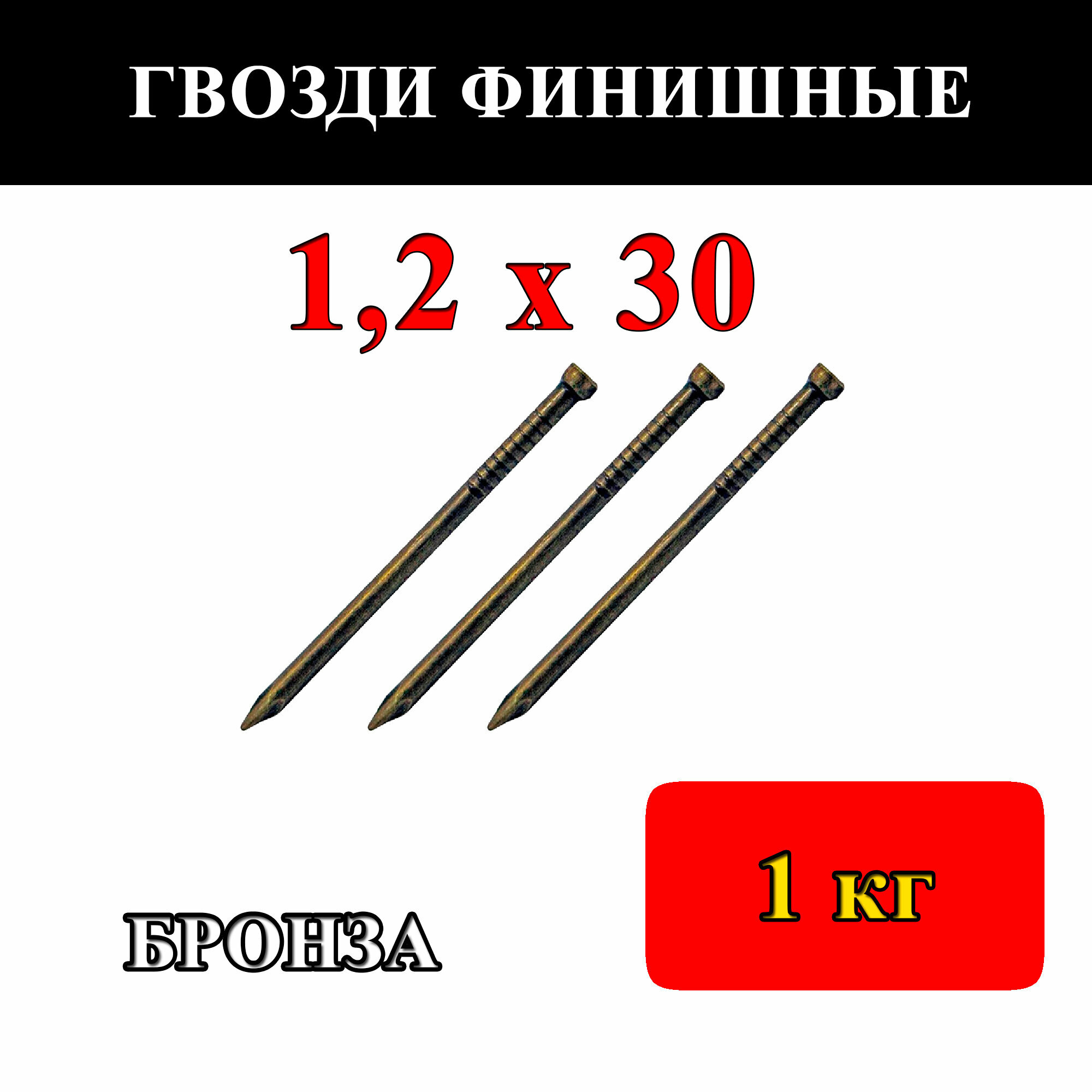 Гвозди финишные 1,2мм х 30мм, латунированные (упаковка - 1000 г)