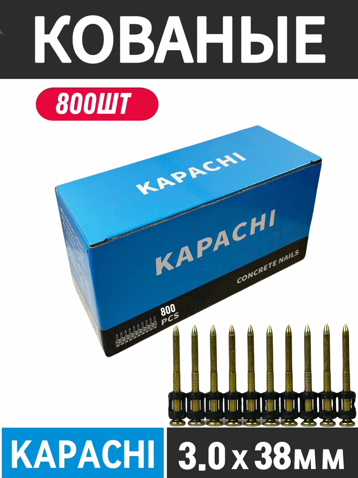 Гвозди по бетону кованые 32*3 мм KAPACHI для монтажного пистолета