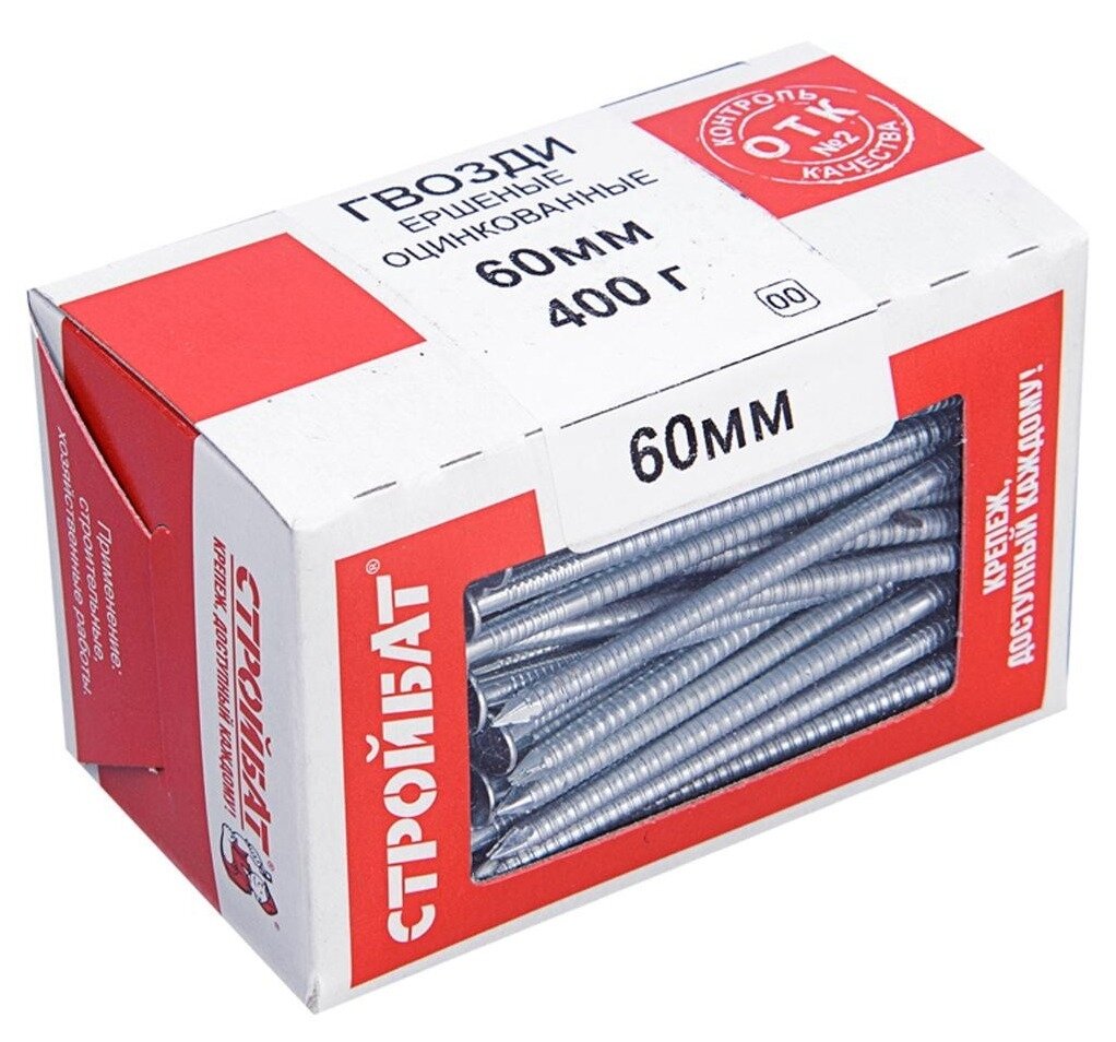Гвозди ершеные Стройбат оцинкованные, стальные, 60мм, 0.4кг / крепеж и фурнитура (комплект из 2 шт) интересное: