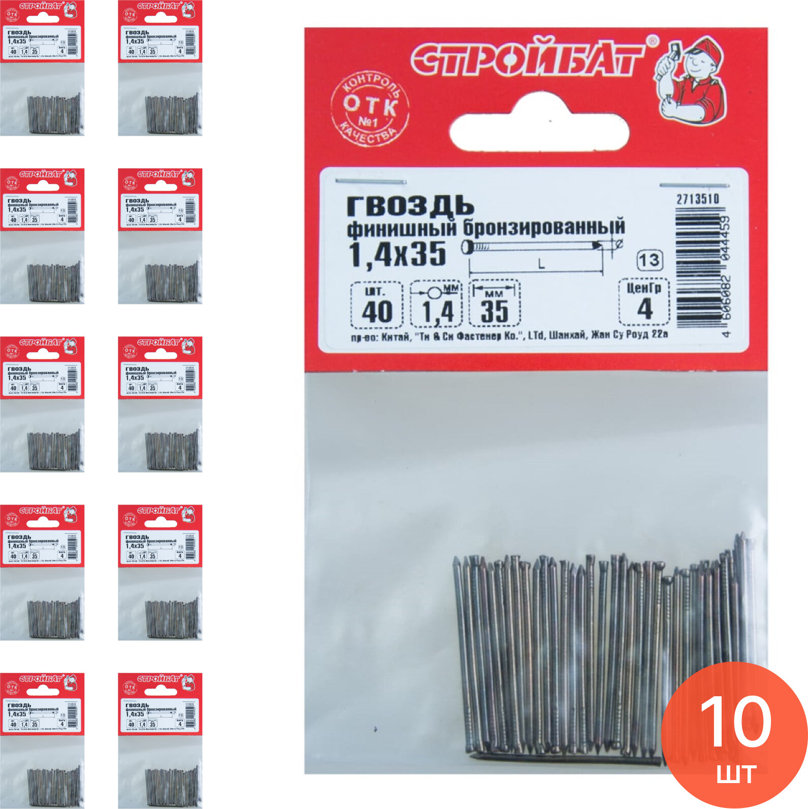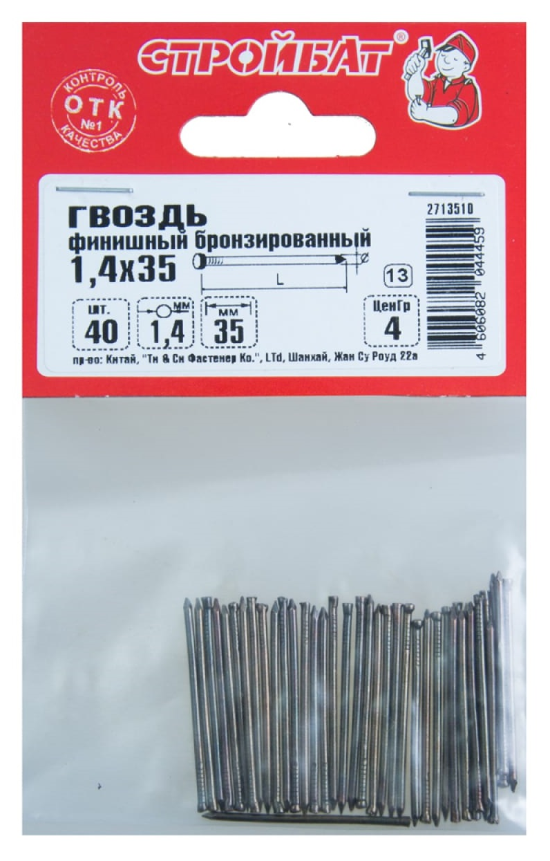 Гвозди финишные Стройбат бронзированные, стальные, 1.4×35мм, 40шт. / крепеж и фурнитура (комплект из 10 шт) интересное:
