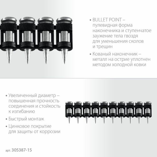 СохранитьГвозди по бетону оцинкованные 1000 шт. усиленные bullet point 15 х 3.05 мм ЗУБР 305387-15 интересное: