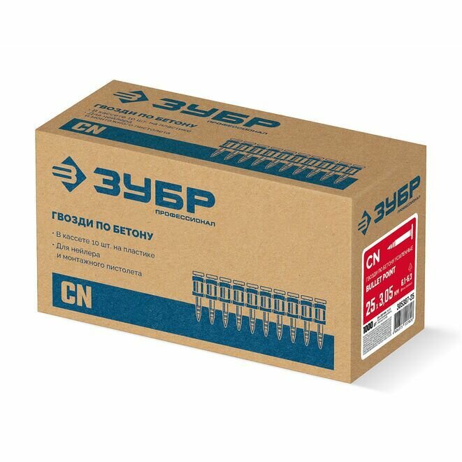 Купить Гвозди по бетону оцинкованные 1000 шт усиленные bullet point 25 х 3.05 мм ЗУБР 305387-25