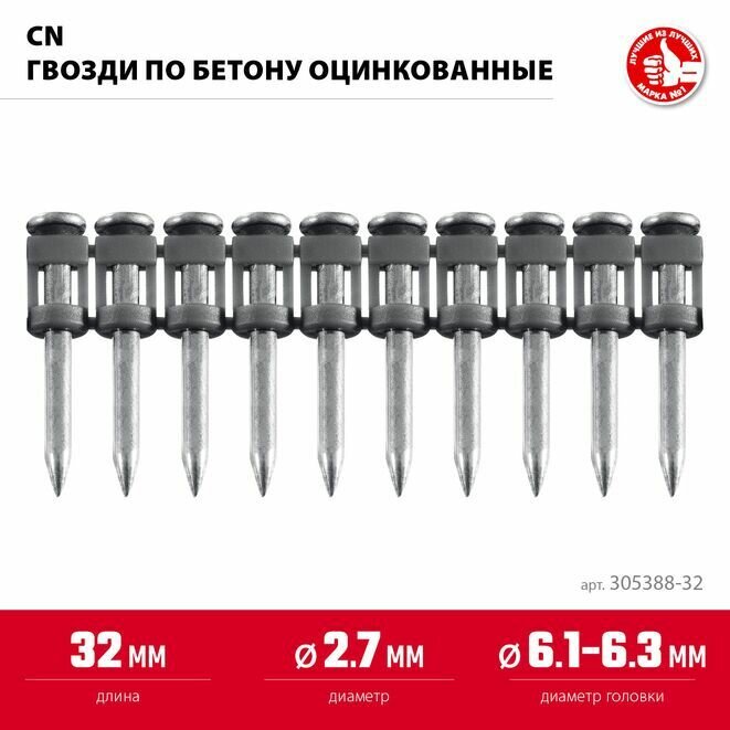 Купить Гвозди по бетону оцинкованные 1000 шт 32х2.7 мм ЗУБР 305388-32