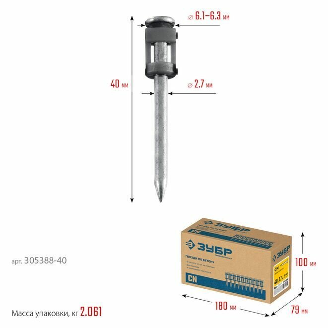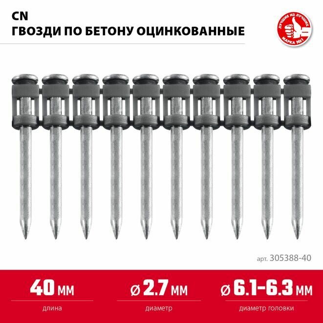 Купить Гвозди по бетону оцинкованные 1000 шт 40х2.7 мм ЗУБР 305388-40