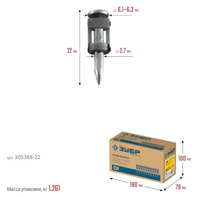 Купить Гвозди по бетону оцинкованные 1000 шт 22х2.7 мм ЗУБР 305388-22