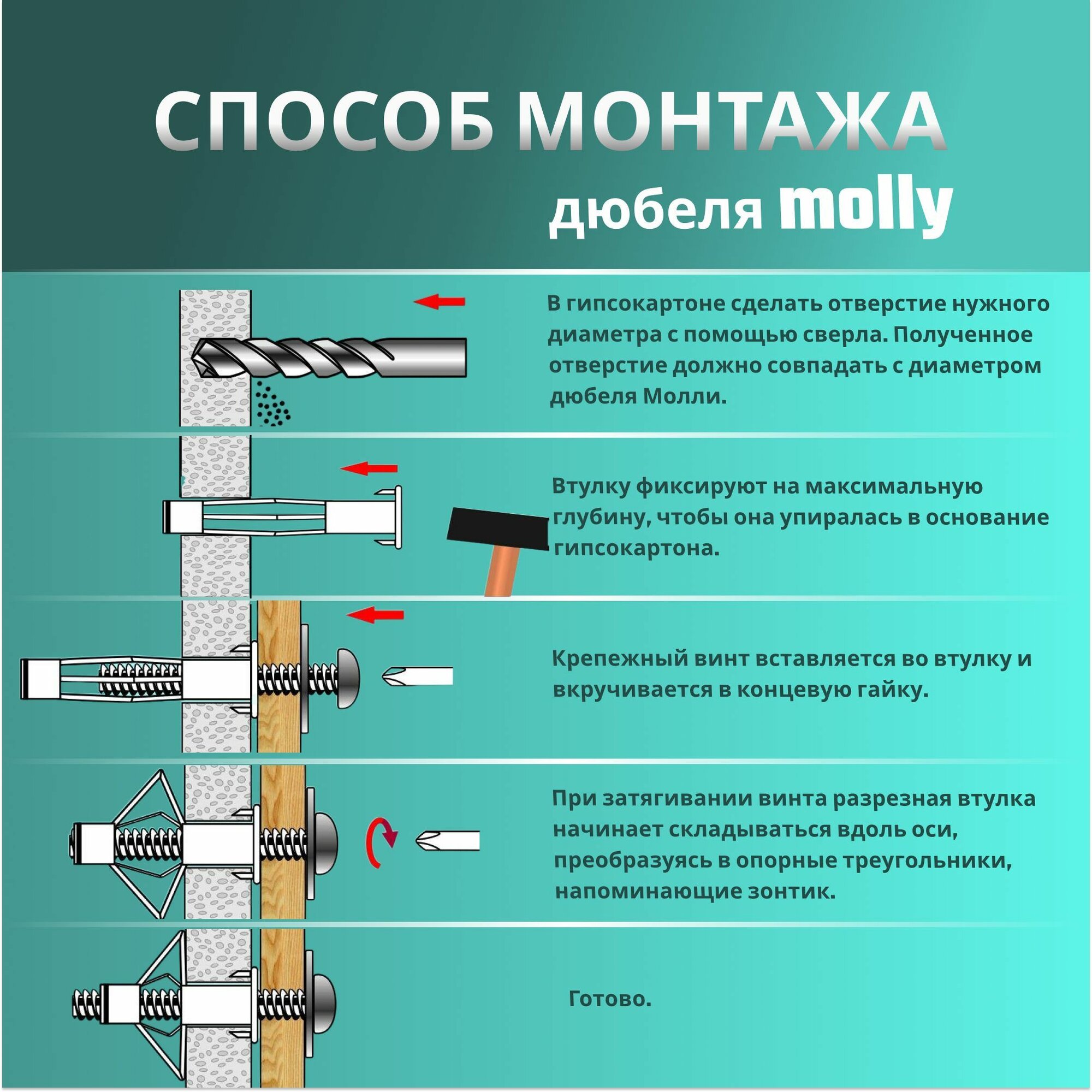 Дюбель для гипсокартона, Molly, бабочка, 8*63, 4 шт