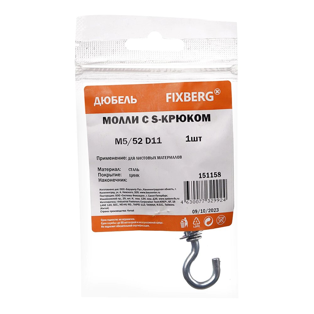 Купить Дюбель Молли c S-крюком FIXBERG 11х52 мм М5