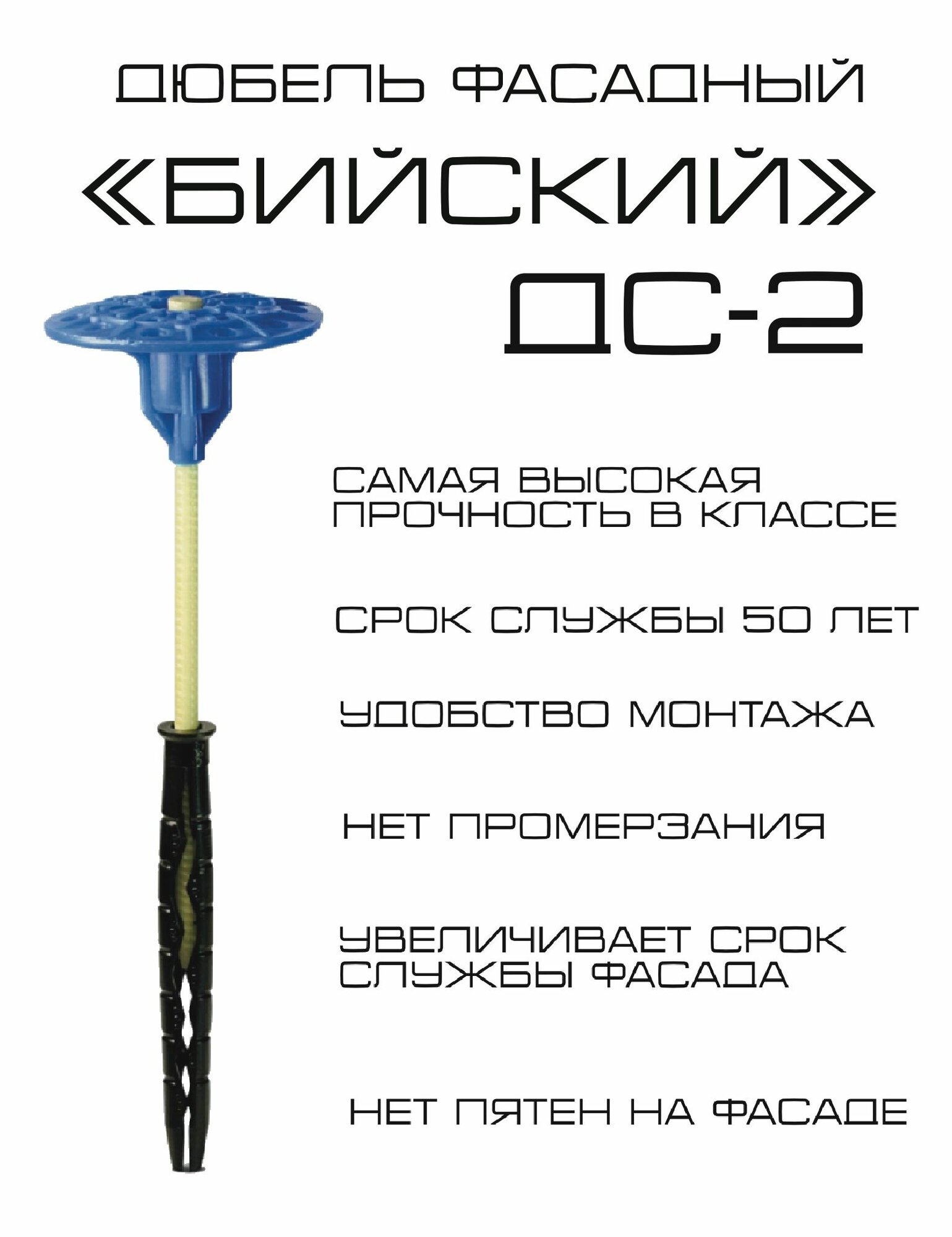 Дюбель фасадный для утеплителя "Бийский" ДС-2 100 мм с анкерным элементом 50 мм , 500 штук