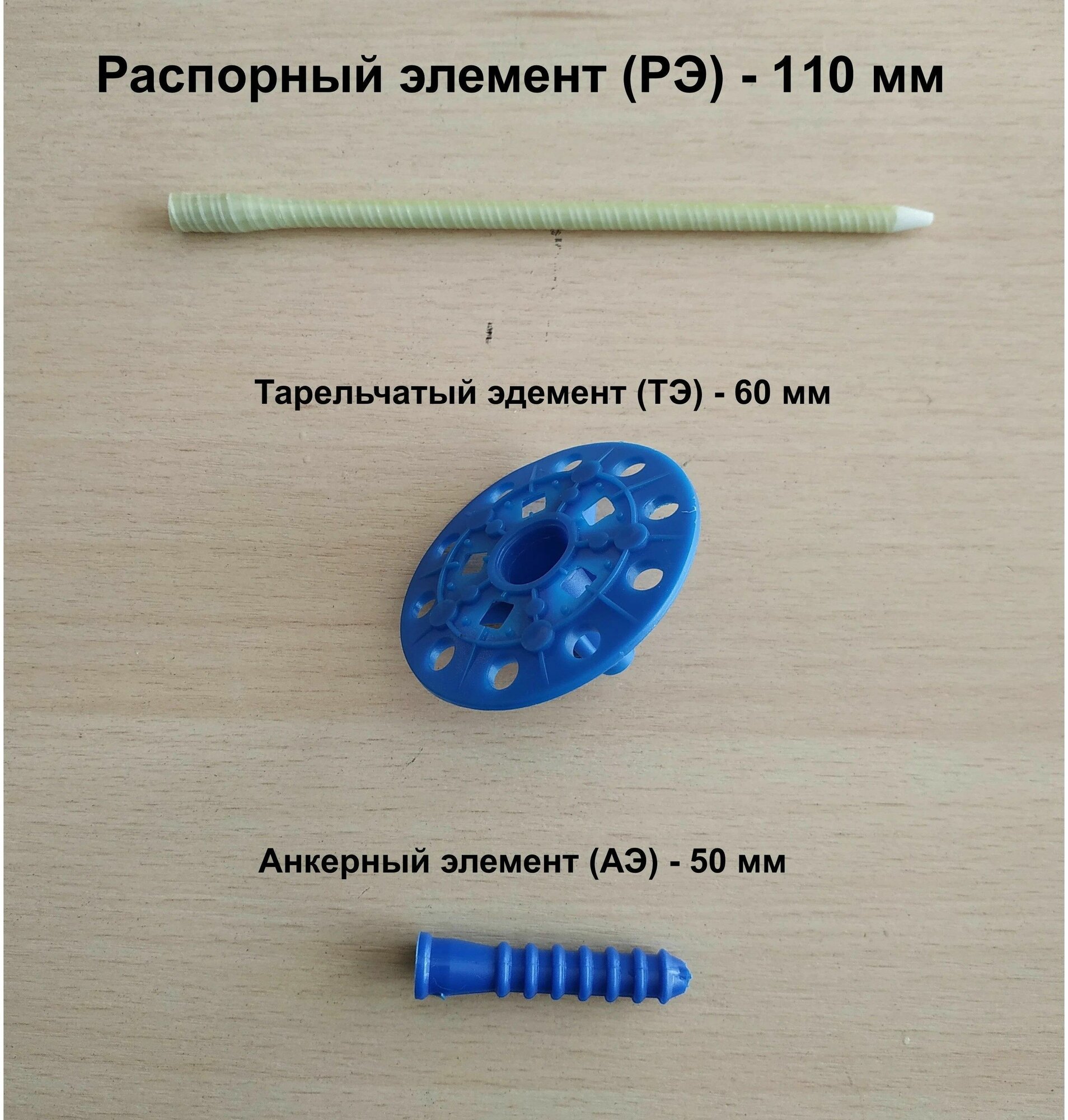 Дюбель фасадный для утеплителя "Бийский" ДС-2 110 мм с анкерным элементом 50 мм, 100 штук