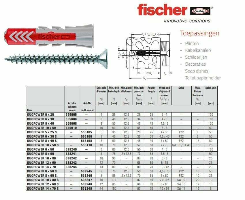 Ниже Вы можете прочитать отзывы на ДЮБЕЛЬ УНИВЕРСАЛЬНЫЙ ВЫСОКОТЕХНОЛОГИЧНЫЙ FISCHER DUOPOWER (НЕЙЛОН), 8X65 ММ 50шт, ознакомится с подробными характеристиками, посмотреть интересные обзоры и фотографии на ДЮБЕЛЬ УНИВЕРСАЛЬНЫЙ ВЫСОКОТЕХНОЛОГИЧНЫЙ FISCHER DUOPOWER (НЕЙЛОН), 8X65 ММ 50шт.