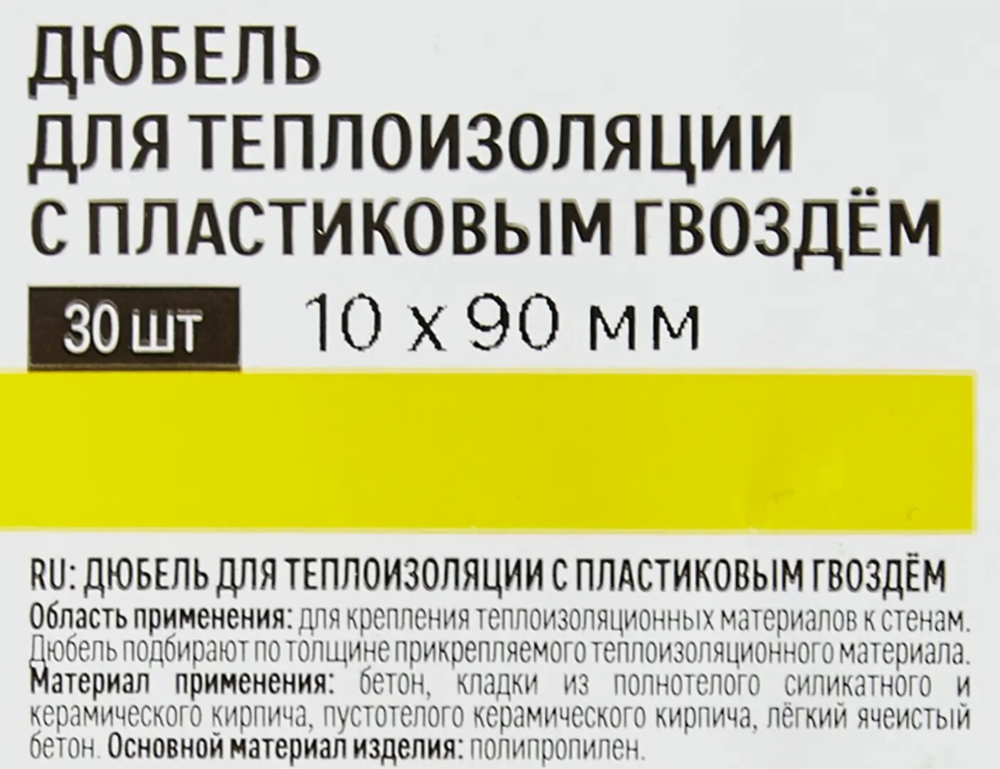 Дюбель для теплоизоляции Лучшая цена 10x90 мм, полипропилен, 30 шт. интересное: