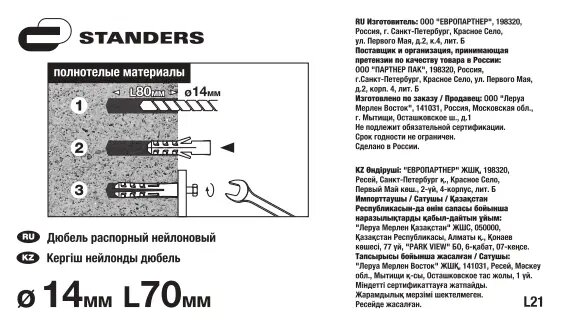 Ниже Вы можете прочитать отзывы на Дюбель шестигранный Standers PND 14х70 мм, нейлон, 4 шт., ознакомится с подробными характеристиками, посмотреть интересные обзоры и фотографии на Дюбель шестигранный Standers PND 14х70 мм, нейлон, 4 шт..