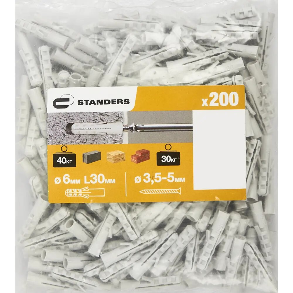 Купить Дюбель потайной Standers PND 6х30 мм, нейлон, 200 шт.