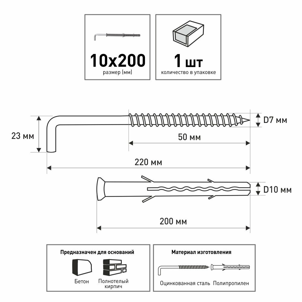 Дюбель рамный KOELNER 10х200 мм с Г-крюком 7х220 мм интересное: