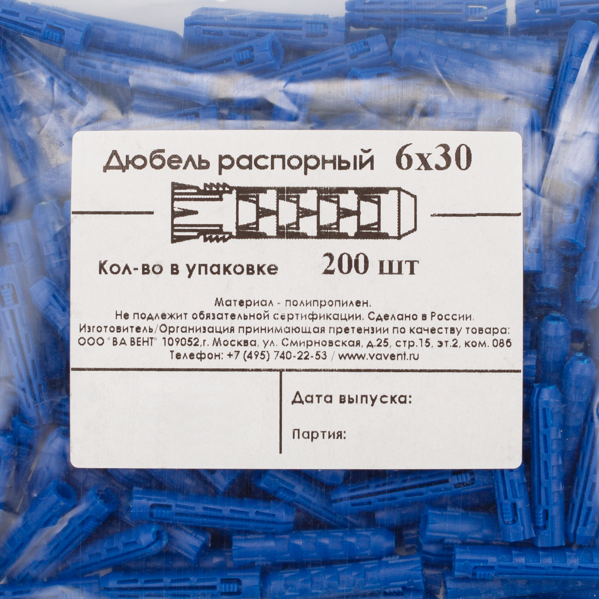 Дюбель распорный для полнотелых материалов, 6x30 мм, 200 шт. интересное: