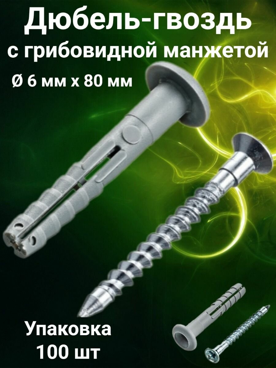 Дюбель гвоздь 6 х 80 мм, упаковка 100 шт. Дюбель-гвоздь с грибовидной манжетой. интересное: