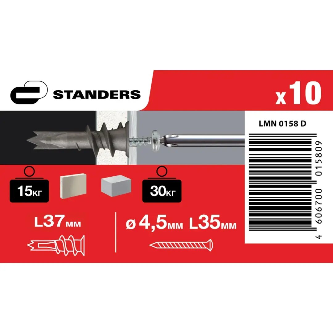 Купить Дюбель Standers для листовых материалов, усиленный PBAM L 37 с шурупом 4.5x35 мм, 10 шт.