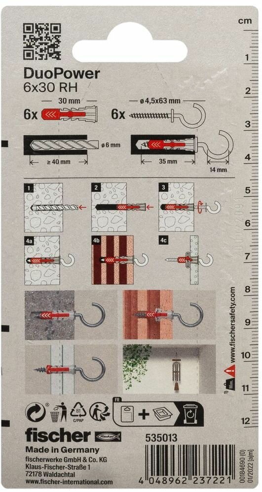 Ниже Вы можете прочитать отзывы на Дюбель 6х30 с круглым крюком RH Fischer DUOPOWER K NV нейлон, 6 штук в блистере, ознакомится с подробными характеристиками, посмотреть интересные обзоры и фотографии на Дюбель 6х30 с круглым крюком RH Fischer DUOPOWER K NV нейлон, 6 штук в блистере.