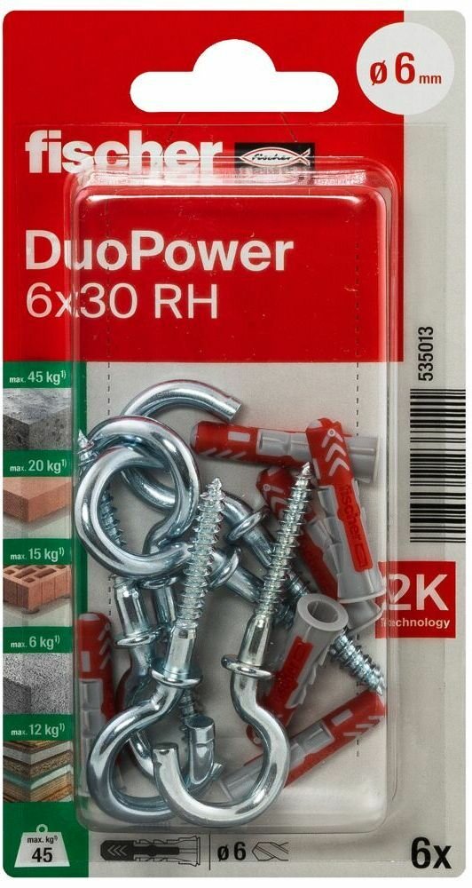 Дюбель 6х30 с круглым крюком RH Fischer DUOPOWER K NV нейлон, 6 штук в блистере интересное: