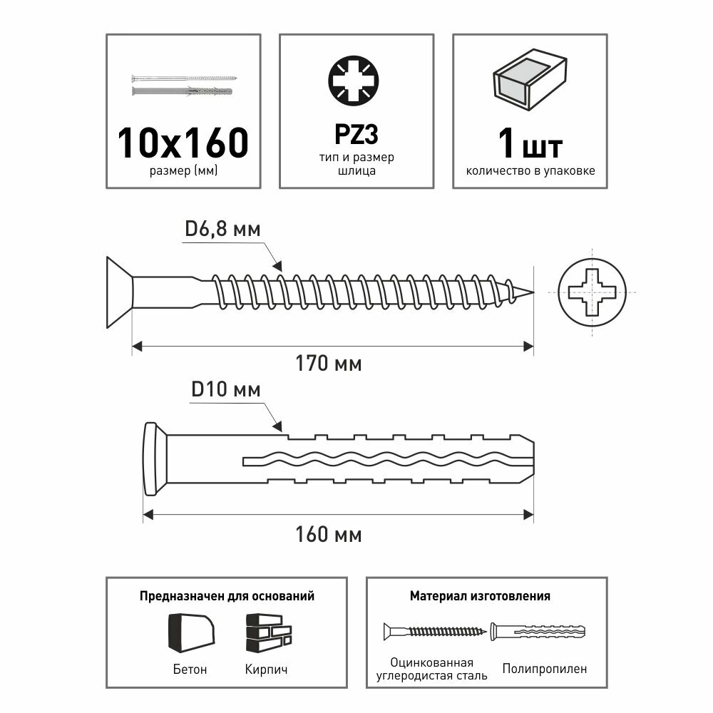 Дюбель рамный KOELNER K-P5-KDS-10160 10х160 мм с шурупом 6,8х170 мм интересное: